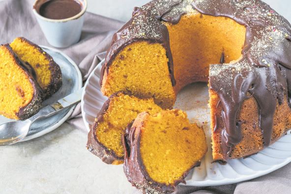 4. Pečen i hladan kolač po želji prelijte čokoladnom glazurom ili ga pospite šećerom u prahu.
