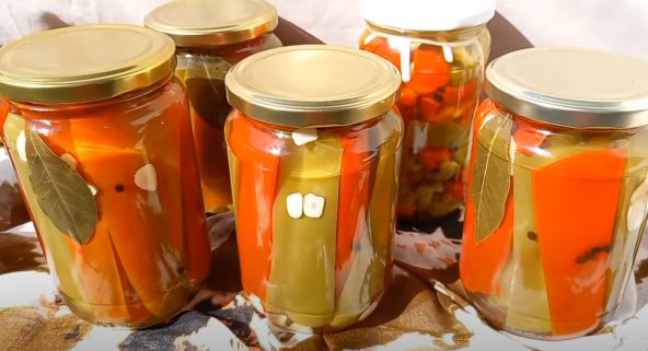 Punjenje tegli – U čiste i sterilisane tegle ređati paprike, zatim dodati nekoliko listića belog luka, lovorov list i par zrna bibera. Na vrh svake tegle dodati po dve kašike soli i prstohvat šećera.
