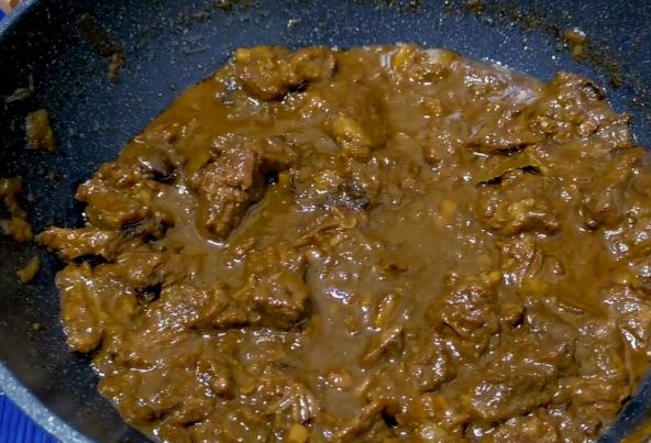 Pokrijte posudu poklopcem ili aluminijumskom folijom i prebacite u zagrejanu rernu. Pecite oko 1 sat i 45 minuta, dok meso potpuno ne omekša i sos se ne zgusne.