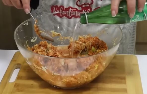 - Dodajte mleveno meso, prezle, začine, jaja, kiselu vodu i sve izmešajte.