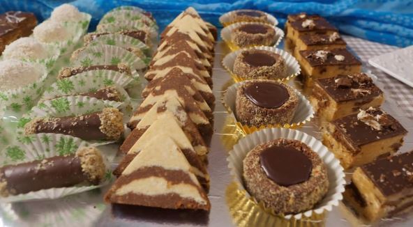 Osnova je jednostavna, bez pečenja, a dalje se deli na šest delova koji se obogaćuju kokosom, orasima, lešnicima, čokoladom, rumom ili keksom. Rezultat je tacna puna raznovrsnih posnih kolača koji izgledaju kao da su rađeni po posebnim receptima.