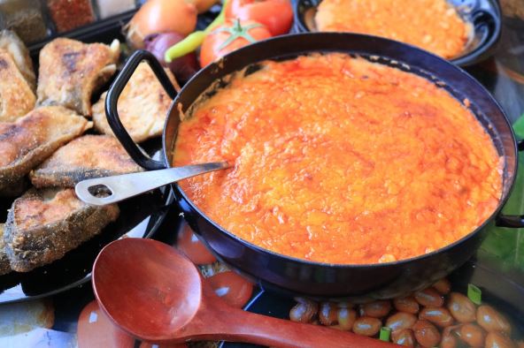 - Napravite specijalnu zapršku tako što ćete na mnogo ulja da predinstate crni luk i začinsku papriku pa to dodate u pasulj i umutite sve mikserom dok se ne stvori pire od pasulja.