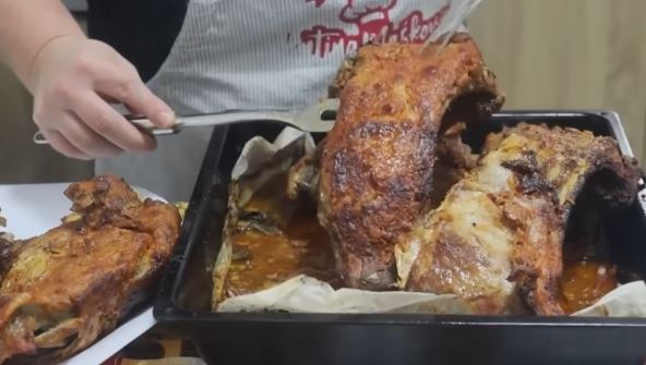 Zatim prebaciti u pleh, preliti masnoćom sa marinadom i zapeći u rerni još 45 minuta na 180 stepeni Celzijusa.