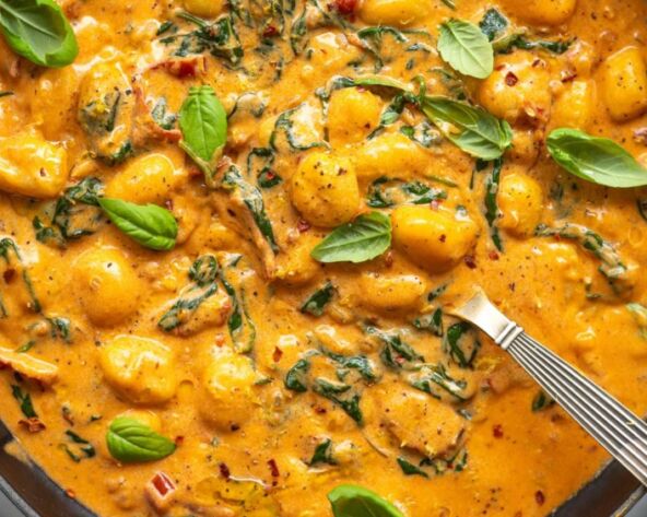 - Promešajte, pa dodajte sušeni paradajz i spanać.