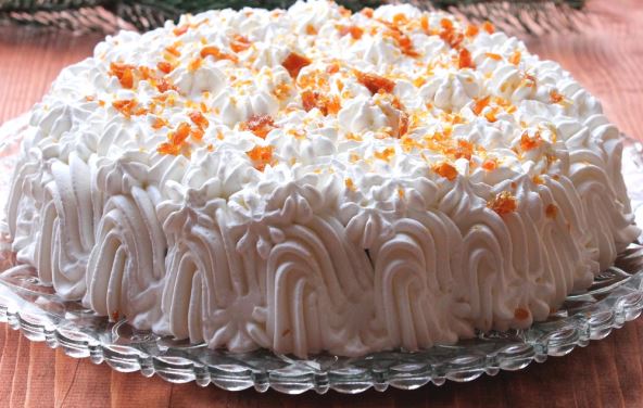 2. Sve lagano izmešajte, sipajte na tacnu i oblikujte tortu rukama. Premažite je šlagom umućenim sa vodom i stavite u frižider da se stegne. Po želji ukrasite kokosovim brašnom i komadićima voća.