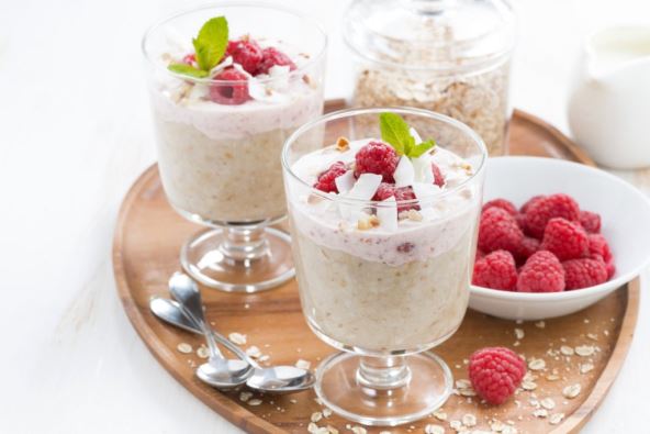 3. Servirati u staklenim čašama za desert i dodati nekoliko celih malina za dekoraciju.