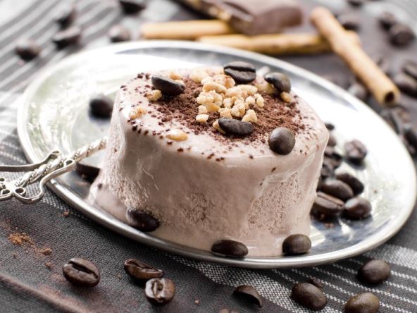 4. Dodajte espreso prah da se rastvori. Ostaviti da se ohladi, povremeno mešajući. Kada je krem ohlađen, postepeno dodajte čokoladu i mešajte dok sladoled ne postane prošaran. Stavite u zamrzivač, a kad se dobro ohladi služite.