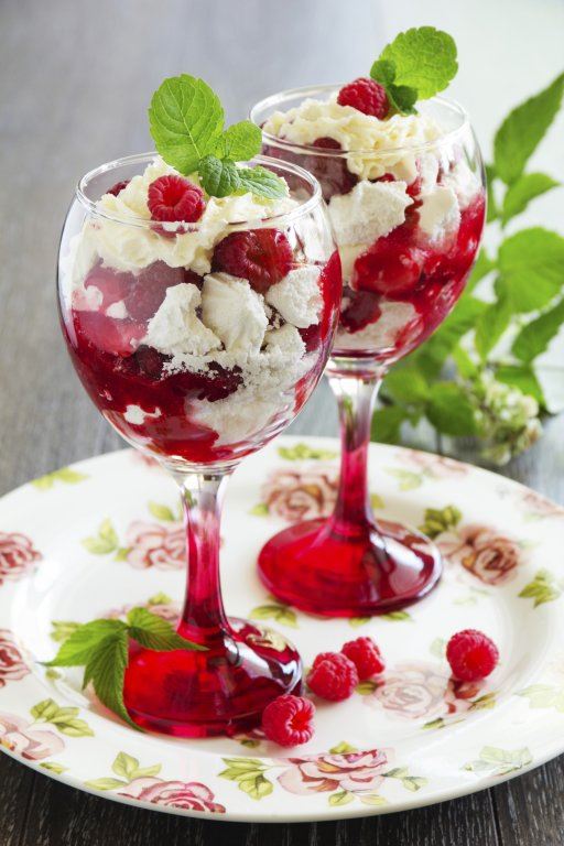 4. Odozgo ukrasite preostalim malinama i pireom.