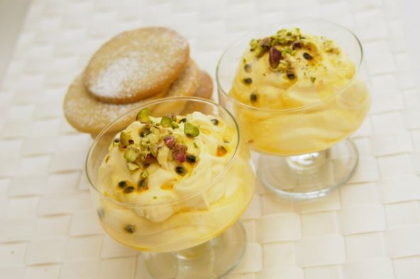 1. Izlomite piškote, obložite njima kalup, pa ih poprskajte rumom. Umutite jaja, mleko, šećer i vanilin-šećer, pa time prelijte piškote.