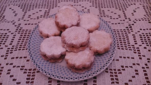 Na dasci na kojoj ste posuli brašno razvucite koru debljine oko 0,5-1 cm. Modlom vadite male pogačice, a zatim ih ređajte u podmazani pleh. Pecite na 180 stepeni oko 15-20 minuta. Pritom pazite da ostanu bele. Kada se ohlade, vanilice premažite pekmezom (po ukusu) i sastavljajte ih dve po dve. Na kraju ih uvaljajte u prah šećer, u koji ste dodali vanilin šećer.