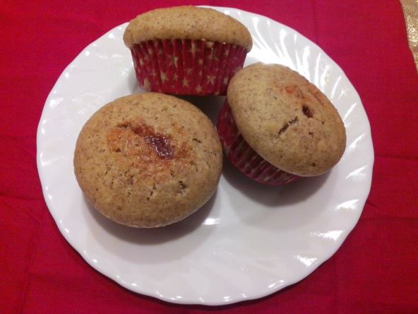 2. Dodajte ulje i kiselu vodu, pa dobro sjedinite. Izlijte testo u kalupe za mafine, pa u svaki utisnite po kašičicu marmelade.