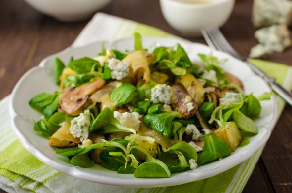 Dodajte lešnik, slaninu i zelenu salatu u činiju. Stavite kozji sir na tost. Rasporedite po tanjiru i služite.