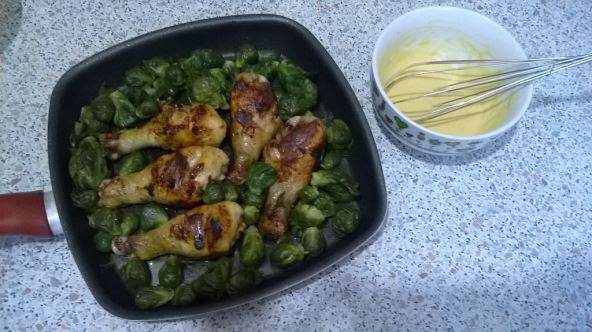 Dok se jelo malo prohladi spremiti sos. U posudu staviti dve kašike senfa, kašiku maslinovog ulja, malo soli i bibera po ukusu, i iseckati struk mirođije. Dodati kašičicu soka od limuna ili kašiku soka od pomorandže. Sve zajedno promešati dok se sastojci ne sjedine i sos ne postane ujednačen. Po želji u sos dodati kašičicu rendanog đumbira, karija ili čilija.