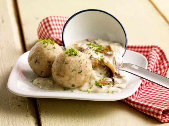 4. Razredite sirćetom, sipajte pavlaku, ostavite da provri, pa kuvajte na laganoj vatri 5-10 minuta. Posolite i pobiberite. Ocedite knedle i poslužite ih sa povrćem i pečurkama.