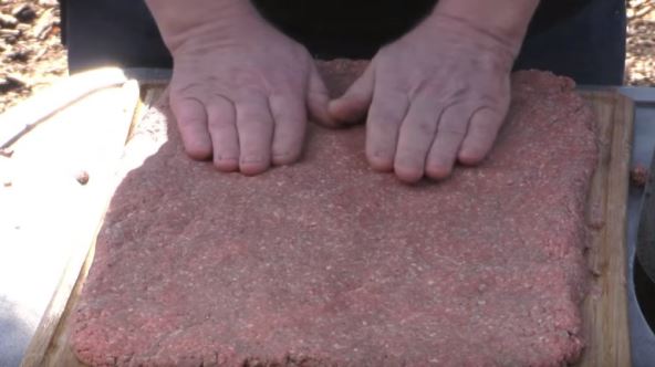 Meso stavite na dasku koju ste prethodno nakvasili vodom ili pivom. Preko njega stavite začine (so, biber, beli luk - po želji), paradajz sos (ili neki drugi vama omiljeni), isečeni crni luk, celer, prženu slaninu i na kraju kačkavalj, tanko sečen. Zatim urolajte sve, kako biste dobili rolat.