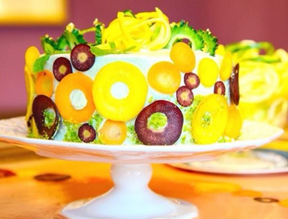 Sva dekoracija je prirodna, napravljena od celih komada povrća ili njihove ljuske, a boje fila potiču isključivo od prirodnih boja povrća poput spanaća, cvekle ili šargarepe čiji se sok meša sa posnim sirom i vizuelno odaje utisak pravog krema u poslasticama.