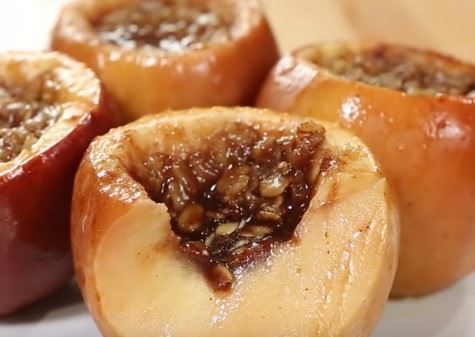 Priprema: U činiji pomešajte pahuljice, smeđi šećer i začine. Prethodno opranim jabukama odsecite srednji deo i napunite ga mešavinom iz činije. Na vrh svake jabuke stavite parče putera i sipajte 1/4 šolje vode. Pecite u rerni 3-4 sata.