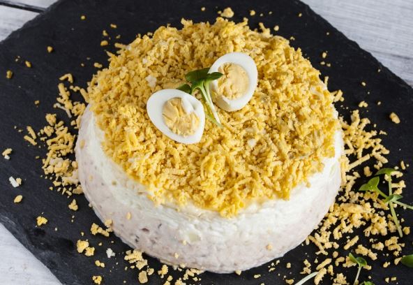 3. Ponovite još dva puta, završite kačkavaljem i ukrasite rendanim jajima. Pre služenja dobro ohladite.