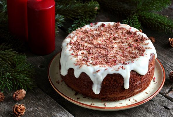 Iz ovako pripremljenog marcipana izrezati krug veličine kalupa za torte a zatim ga podeliti na 16 trouglova poput pice. Trouglove od marcipana spiralno zabosti u ohlađen kolač ostavljajući između njih uske proreze. Tortu sa strane ulepšati ostatkom narendane tamne čokolade ostavljajući 1 kašiku za posipanje po vrhu.