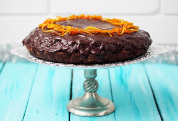 Polako dodajte skuvani skrob, kašiku po kašiku. Ispečenu i ohlađenu koru presecite na pola tako da dobijete dve kore. Na tanjir za tortu stavite jednu koru, poprskajte je sokom od pomorandže i filujte. Preko stavite drugu koru, poprskajte je sokom od druge pomorandže, pa filujte tortu odozgo i sa strane. Na kraju izrendajte čokoladu preko torte.