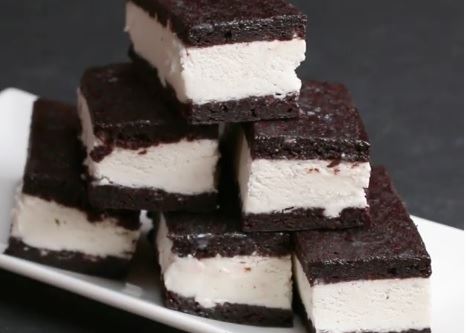 Pošto je kora lagana moguće da će se lomiti, pa je lagano odvojite od papira. Filujte koru sa sladoledom od vanile (ili miks sladoledom po ukusu) i dodajte drugu koru. Kolač možete da prelijete sa rastopljenom čokoladom, ali i ne morate.