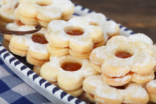 Priprema: Zamešano testo se razvije do debljine 0,5 cm, modlicom se vade "ružice" i peku. Mažu se pekmezom od kajsija i zalepe po dve, jedna preko druge (deo sa rupom preko cele), pa se na kraju uvaljaju u sitan šećer sa vanilom.