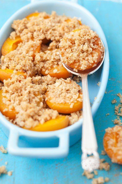 Stavite med i napravite krupnije mrvice. Pospite smesu ravnomerno po kajsijama.