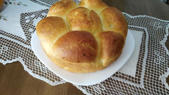 Kvasac rastvoriti u malo toplog mleka, dodati šećer, koricu limuna, ulje, ostatak mleka i jogurta brašno so i zamesiti glatko srednje tvrdo testo. Ostaviti da testo naraste na toplom oko pola sata.