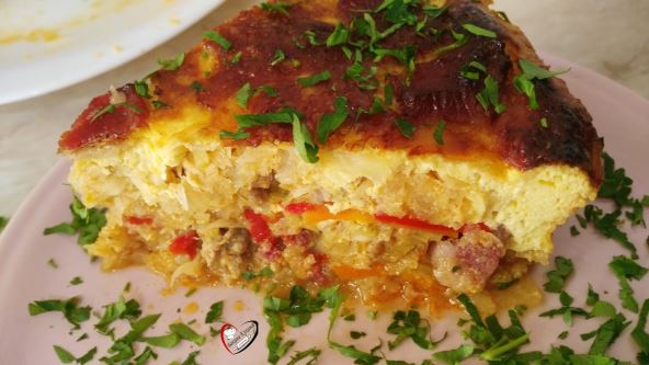 Potrebno je: 1/2 glavice slatkog kupusa, 250 g mlevenog mesa, 150 g suve seckane slanine, 1 praziluk (seckan), 1 šargarepa (seckana), 1 zelena paprika (seckana), 3 jaja, 200 g pavlake, 100 ml jogurta, 3 čena sitno seckanog belog luka, suvog začina, aleva paprika i tucana ljuta, biber i so