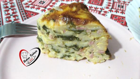 Dodati i spanać sa prazilukom pa onda sve izmešati. Kuglof podmazati uljem pa sipati u njega makarone i poravnati. Peći na 200 stepeni C oko 40 min. Pečene makarone ostaviti u kuglofu da se malo prohlade istresti na tanjir i seći. Ukus je neopisivo dobar.