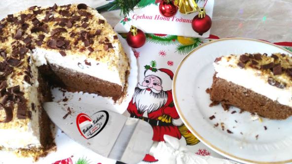 Pečen biskvit preliti ohlađenim čokoladnim mlekom i pustiti da upije. Umutiti šlag, pa dodati mleveni keks. Dobro izjednačiti i premazati preko biskvita. Ostaviti da se ohladi sat-dva, pa seći i sladiti se. Uživajte!