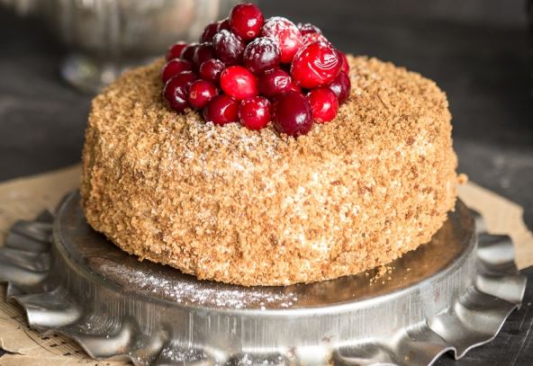 Ostatak kora koje su vam ostale od sečenja izmrvite i time ukrasite vrh i stranice torte, pa stavite da se dobro ohladi.