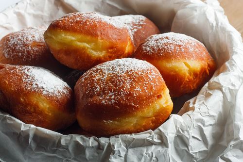 2 jajeta, 300 ml mleka, 100 g margarina, 20 g kvasca, 3 kašike šećera, 1 kašičica soli, 1 kašika naribane korice limuna, 700 g brašna, 800 ml ulja, 250 g šećera u prahu za posipanje