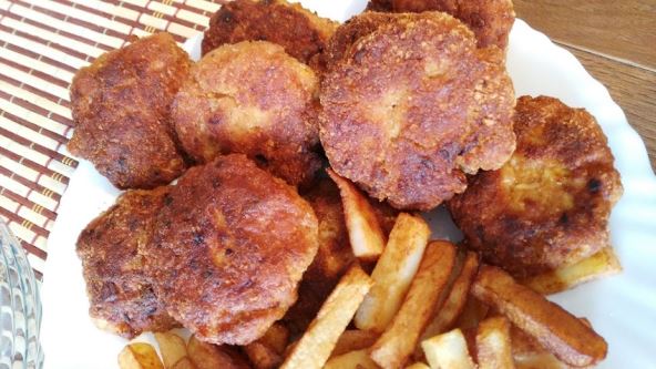 Oblikovati šnicle i pržiti u dubokom ulju.