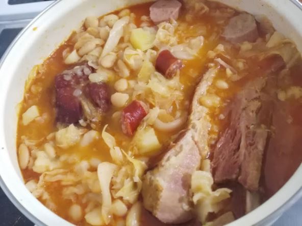 Pasulj oprati dobro, naseći crni luk, dodati dimljene kobasice i staviti da se kuva. Krompir očistiti, iseći na kocke i njega staviti u drugu šerpu da se kuva. Kupus iseći na rezance, ubaciti u njega suvu slaninu, kašiku masti ili ulja, alevu papriku i lovorov list.