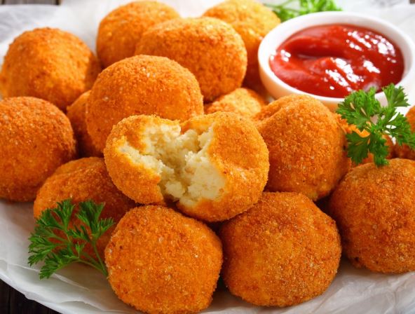 Priprema: Krompir ispasirajte dok je još vruć, pa dodajte jaja, brašno, mleko i sir i zamesite testo. Napravite loptice i ispohujte ih, prethodno umočene u umućena jaja i prezle pomešane sa seckanim peršunom.