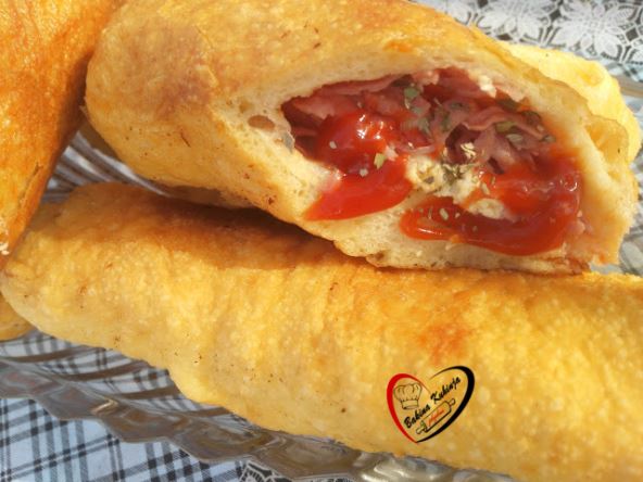 Salamu izrendati, sir izdrobiti, dodati jaje i malo origana. Testo iseći na pravougaonike staviti po sredini malo kečapa, salamu i sir i uviti i dobro prstima i sastaviti testo sa svih strana da ne curi.