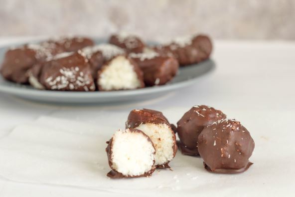 - Čokoladu istopite u mikrotalasnoj, mešajte svakih 15 sekundi kako se ne bi stvrdnula. Umočite kugle u čokoladu. Vratite ih na papir i ostavite da se ohlade dok se čokolada ne stvrdne. Možete ih dodatno uvaljati u kokos, keks, ukrasne mrvice i slično.