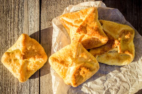 Na dasku za mešanje stavite 140 g maslaca, 140 g mekog brašna, 4 žumanceta, malo soli i mešati rukom dok se testo ne počne da se odvaja od ruku.