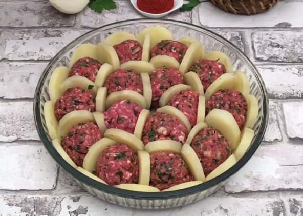 Potrebno je da obarite krompire i iseckate ih na kolutove, pa da njima popločate vatrostalnu posudu.