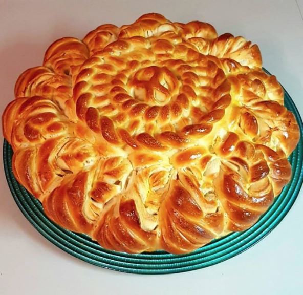 Ostavite pogaču da naraste, pa je premažite žumancetom, mlekom i uljem. Pecite na 160 stepeni oko 40 minuta