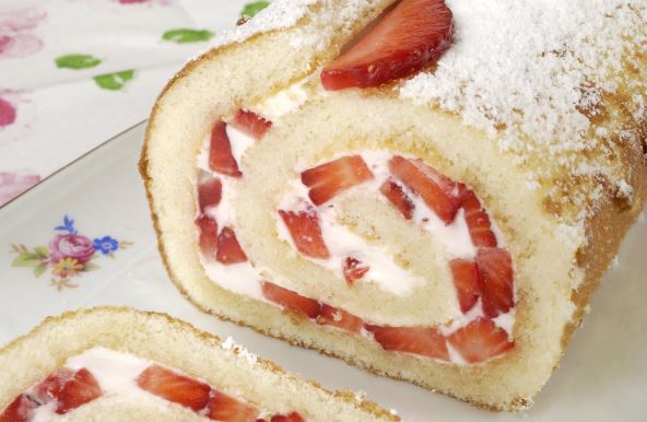 Pečenu koru pažljivo izvadite iz pleha, položite je na kuhinjsku krpu posutu šećerom, urolajte i ohladite. Jagode operite, isecite na manje komade, a nekoliko celih ostavite za ukrašavanje. Mikserom umutite šlag od slatke pavlake, sipajte kašiku šećera u prahu i šlag.