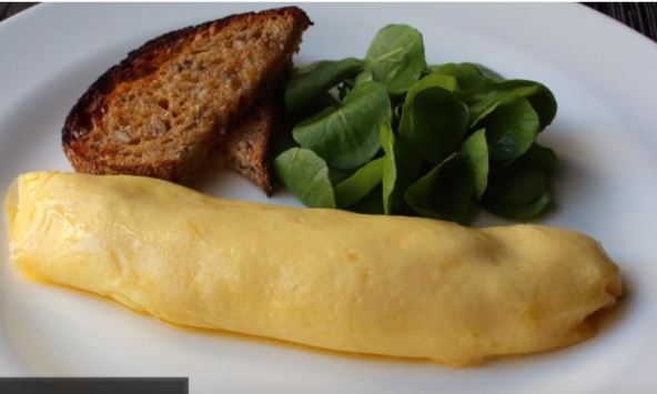 Omlet izvadite u tanjir i poslužite. Po želji u njega možete dodati sir, šunku ili neko povrće pre nego šta ga urolate.
