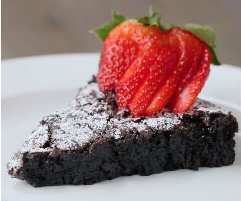 300 g šećera, 2 jaja, 100 g brašna, 50 g kakao praha, prstohvat soli, 120 g istopljenog putera, ekstrakt vanile, šećer u prahu