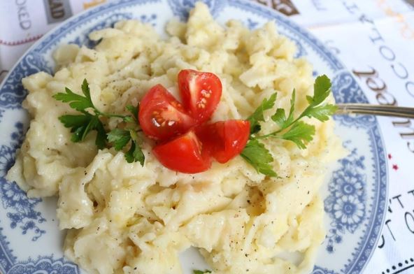Uputstvo: Testeninu skuvati kao i krompir i napraviti pire. Ispržiti sitno seckani luk na ulju pa dodati ukrompir pire. To dodati u kuvanu testeninu i sve dobro izjednačiti.