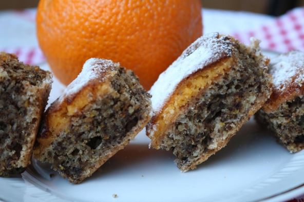 Uputstvo: Odvojiti žumanca od belanaca, pa belanca umutiti sa 10 g šećera. Dodati brašno, ulje, koricu narandže, mlevene orahe i istopljen maslac ili margarin. Sve dobro izmešati i izliti u pleh srednje veličine. Peći 15 minuta na 180 stepeni.