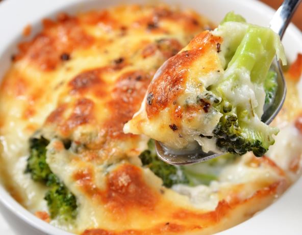 Brokoli stavite u poklopljenu posudu i ugrejte 2-3 minuta na 100 % jačine u mikrotalasnoj, mešajte po jednom. Ocedite sos koji se stvorio.