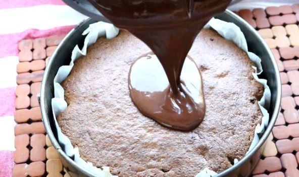 Vruć kolač preliti rastopljenom čokoladom.