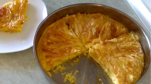 Stavite pitu u rernu zagrejanu na 200 stepeni i pecite je 30 minuta. Gotovu pitu prelijte istopljenim maslacem.