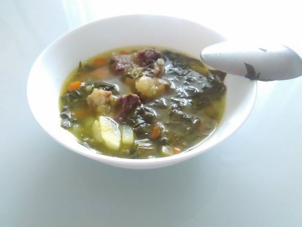 Potrebno je: 1 kašika masti, 1 glavica crnog luka, 4 čena belog luka, 1 šargarepa, 1 koren peršuna, 2 krompira, 300 grama spanaća, 300 grama junetine, 1 juneća šuplja kost, so i biber, malo pavlake.